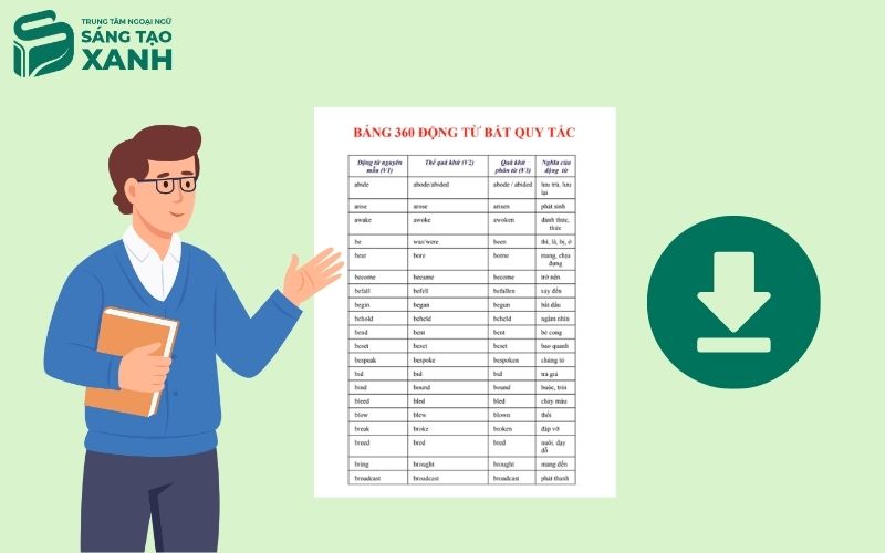 Hệ thống động từ bất quy tắc cấu thành nền tảng ngữ pháp tiếng Anh cốt lõi. Nhóm từ vựng này vận hành độc lập trong cấu trúc thì quá khứ và thể bị động. Việc ghi nhớ dạng thức biến đổi hỗ trợ người học hoàn thiện kỹ năng xây dựng mệnh đề. Sáng Tạo Xanh mời bạn đọc bài viết dưới đây để tiếp cận phương pháp kiểm soát hệ thống ngôn ngữ này.