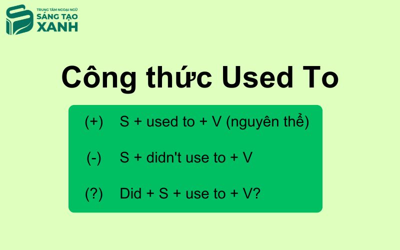 Used to là cấu trúc ngữ pháp dùng để diễn tả một thói quen, hành động lặp lại hoặc trạng thái tồn tại trong quá khứ nhưng nay không còn nữa. Đây là một trong những cấu trúc quan trọng nhất ở cấp độ trung cấp tiếng Anh. Công thức Used to cơ bản: