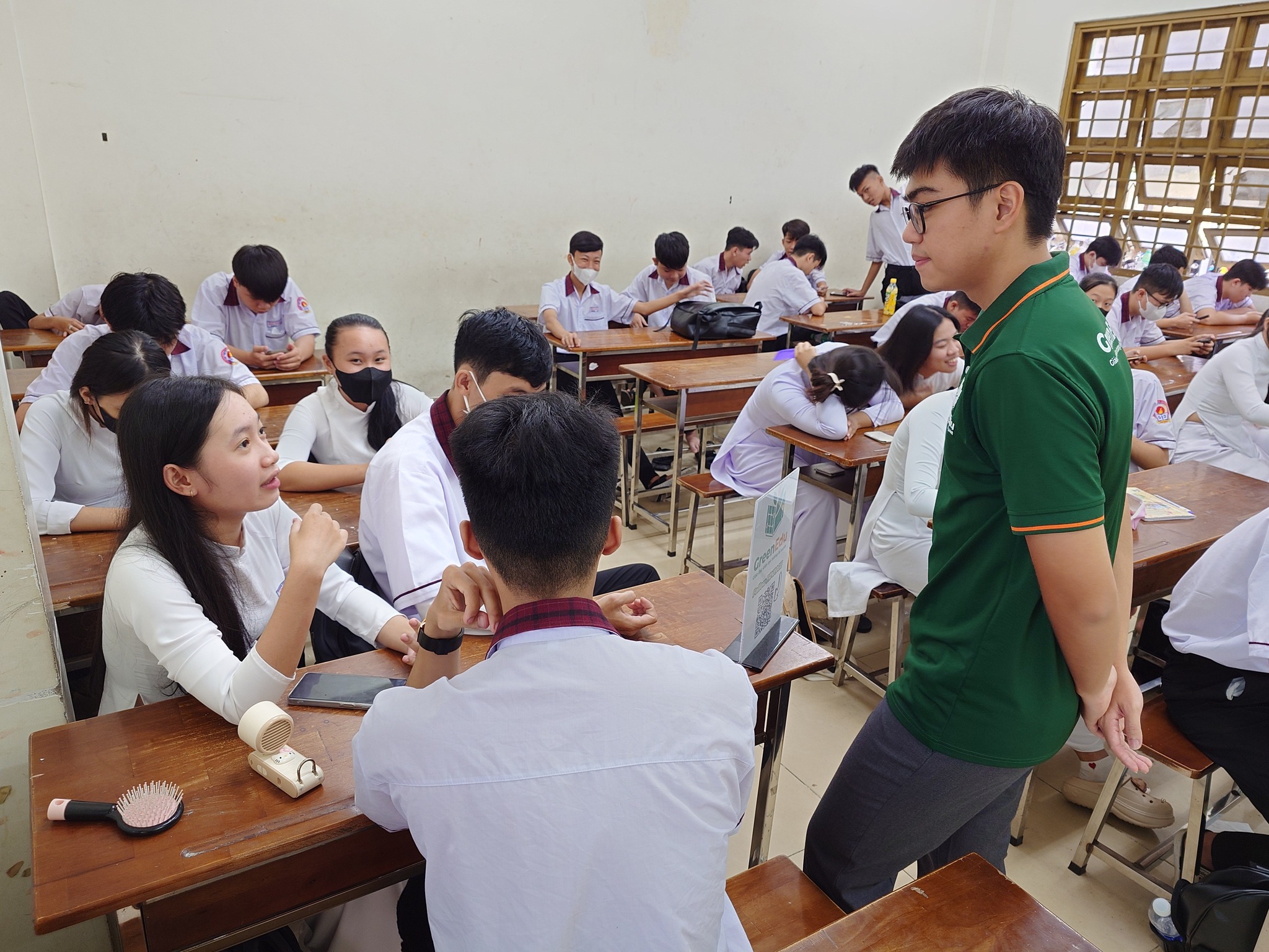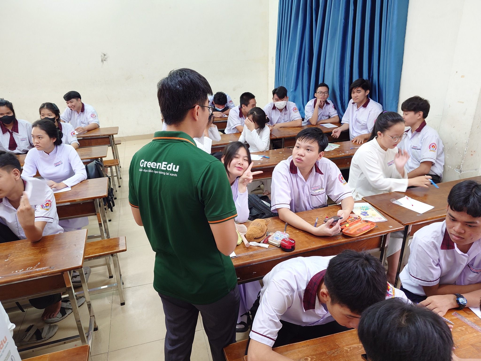 Ngay khi đội ngũ Sáng Tạo Xanh xuất hiện, những ánh mắt tò mò xen lẫn sự háo hức của các bạn trẻ đã tiếp thêm động lực to lớn cho chúng tôi. Không gian hội trường nóng lên từng phút nhờ sự hưởng ứng nồng nhiệt từ phía khán giả trẻ. Các giảng viên của Sáng Tạo Xanh đã trực tiếp xuống từng hàng ghế, trò chuyện và khuyến khích các em mở lời.