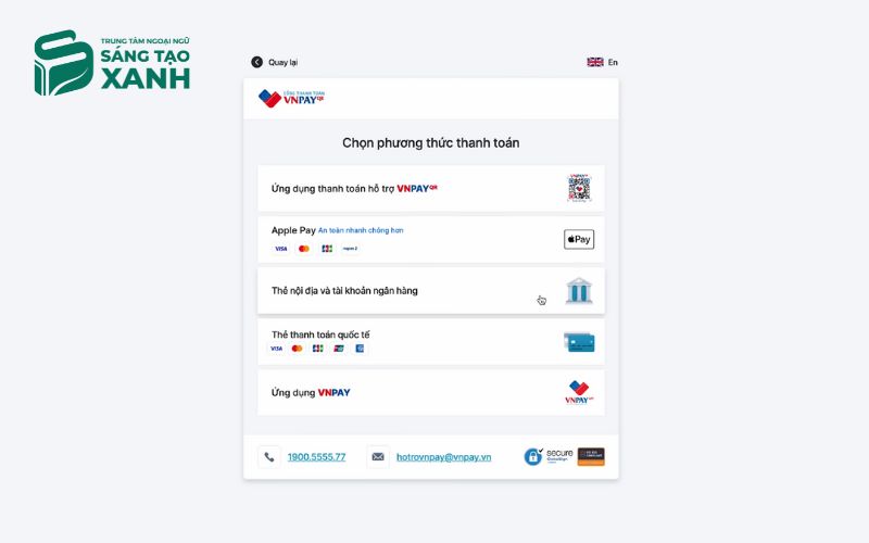 IIG Việt Nam chấp nhận thanh toán lệ phí thi thông qua các cổng thanh toán trực tuyến, ví điện tử hoặc thẻ ngân hàng nội địa/quốc tế. Bạn sẽ cần phải hoàn thành giao dịch trong khoảng thời gian quy định để giữ chỗ. Sau khi thanh toán thành công, hệ thống sẽ ghi nhận trạng thái hồ sơ của bạn đã hoàn tất bước đăng ký online.
