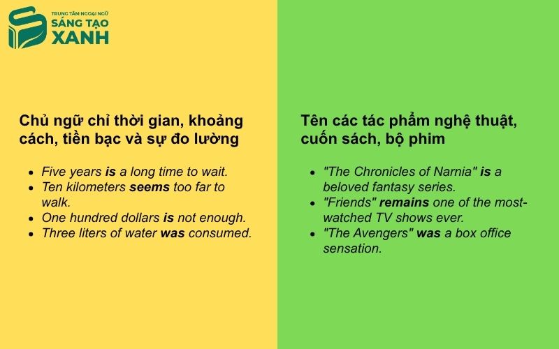 2. Chủ ngữ chỉ thời gian, khoảng cách, tiền bạc và sự đo lường