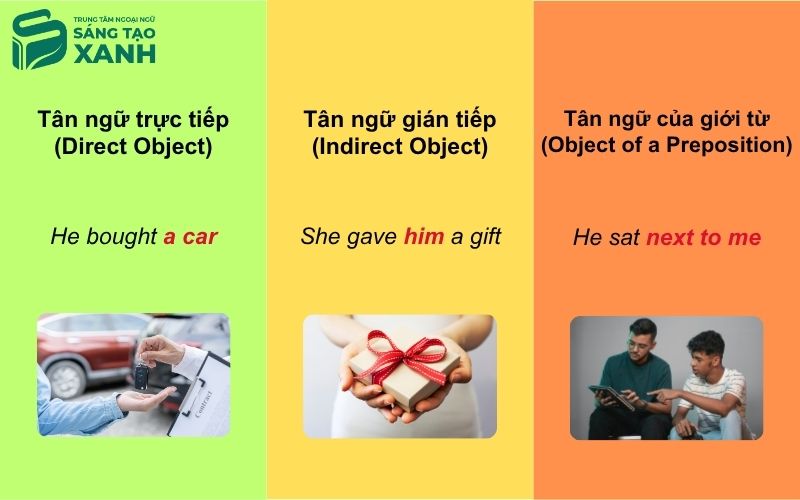 Tiếng Anh phân chia tân ngữ thành ba loại chính dựa trên mối quan hệ của chúng với động từ và giới từ trong câu.