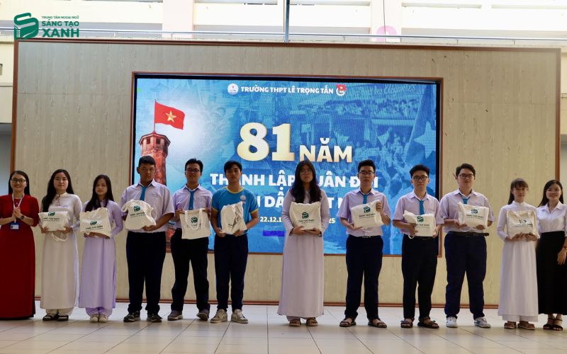 Buổi lễ trao thưởng diễn ra trong không khí trang trọng dưới sự chứng kiến của Ban Giám hiệu nhà trường, các thầy cô giáo và toàn thể học sinh. Đại diện Sáng Tạo Xanh đã trực tiếp bước lên sân khấu, trao tận tay những phần quà giá trị cho 10 cá nhân xuất sắc này.
