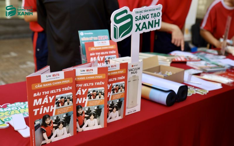 Ngay sau lễ trao giải, khu vực tư vấn của Sáng Tạo Xanh tại sân trường lập tức trở thành tâm điểm thu hút sự chú ý. Tại đây, các bạn học sinh được giải đáp cặn kẽ về sự khác biệt giữa chứng chỉ IELTS và TOEIC, từ đó lựa chọn được hướng đi phù hợp nhất với năng lực và nguyện vọng xét tuyển của mình.